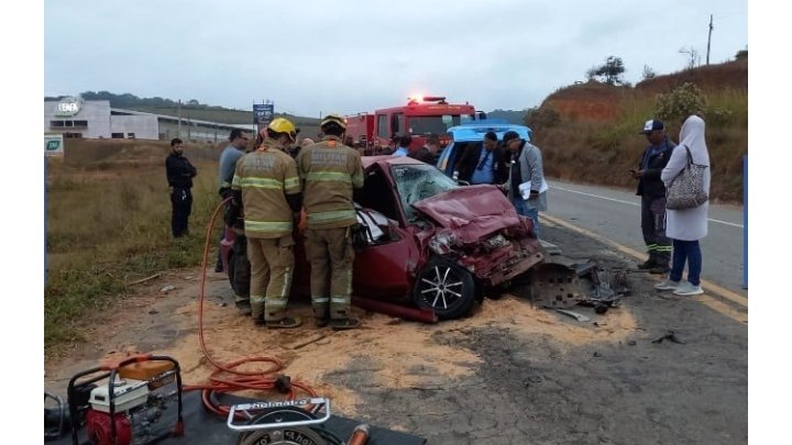 Com o forte impacto, o motorista e o passageiro do carro de passeio, vieram à óbito no local e estavam presos às ferragens.