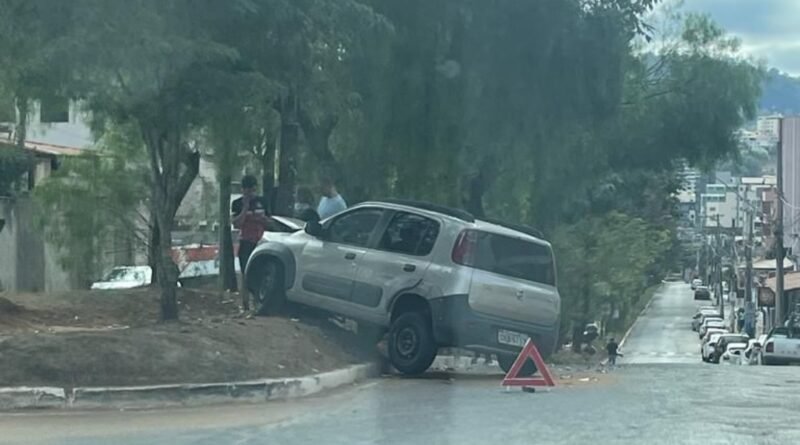 Um Fiat Uno de cor prata chocou-se contra uma árvore no canteiro central da avenida.