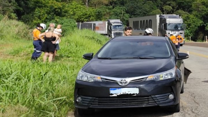 Agora há pouco aconteceu um acidente entre dois veículos de passeio, a colisão foi traseira, nos dois veículos haviam 8 pessoas, sendo 7 adultos e um bebê.
