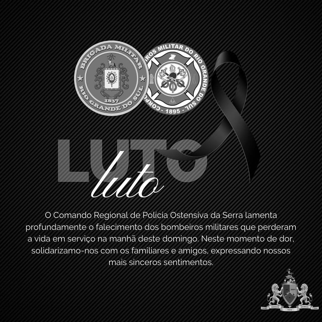 O Corpo de Bombeiros Militar do Estado do Rio Grande do Sul também postou uma nota homenageando os saldados que infelizmente faleceram.