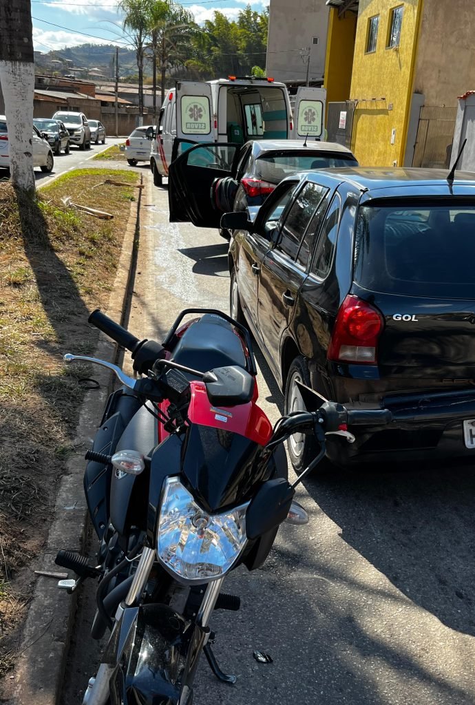 Acidente entre motocicletas e veículo deixou uma mulher ferida na tarde de hoje em João Monlevade