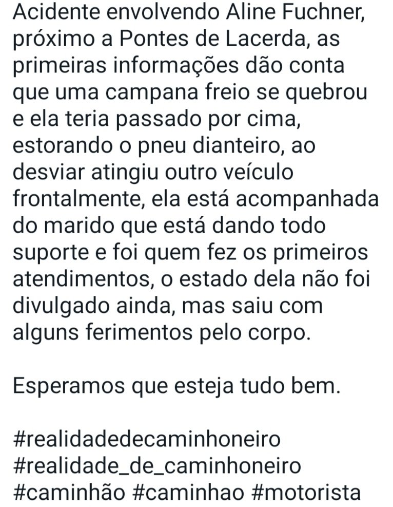 Acidente envolvendo Aline Fuchner em Pontes Lacerda MT