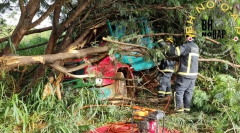 O caminhão com dois ocupantes, carregado com botijões de gás, deslocava-se pela rodovia com destino a Carmo do Paranaíba quando saiu da pista, invadiu a faixa de domínio e chocou-se contra árvores existentes no local.