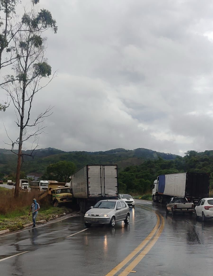Acidente envolvendo caminhão de São Gonçalo do Rio Abaixo e carreta na BR-381 é registrado nesta manhã