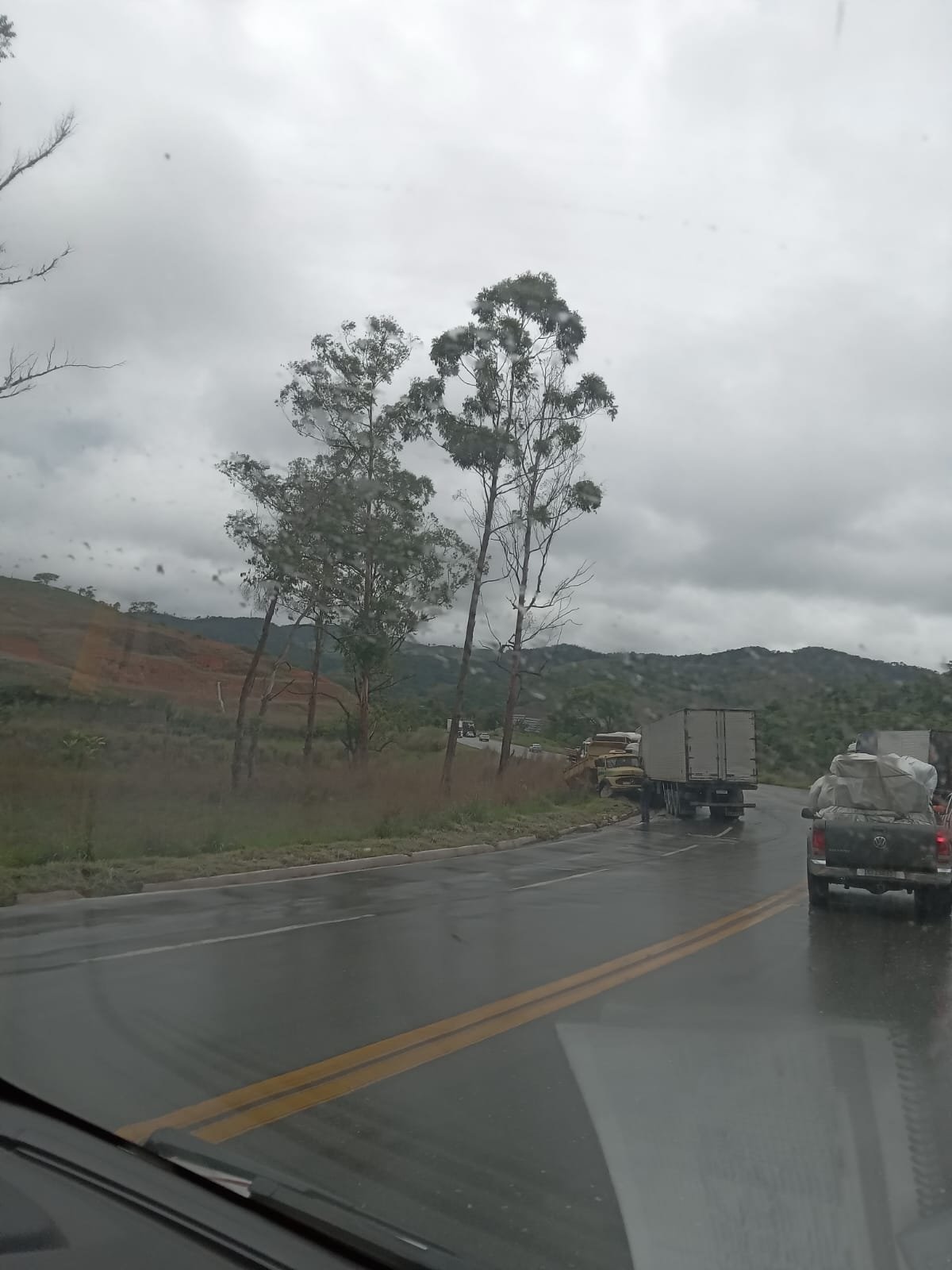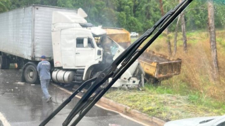 Onde uma carreta que seguia no sentido Belo Horizonte, o condutor do veículo perdeu o controle, invadiu a contramão e chocou-se contra um caminhão basculante em que o condutor do veículo é de São Gonçalo do Rio Abaixo.