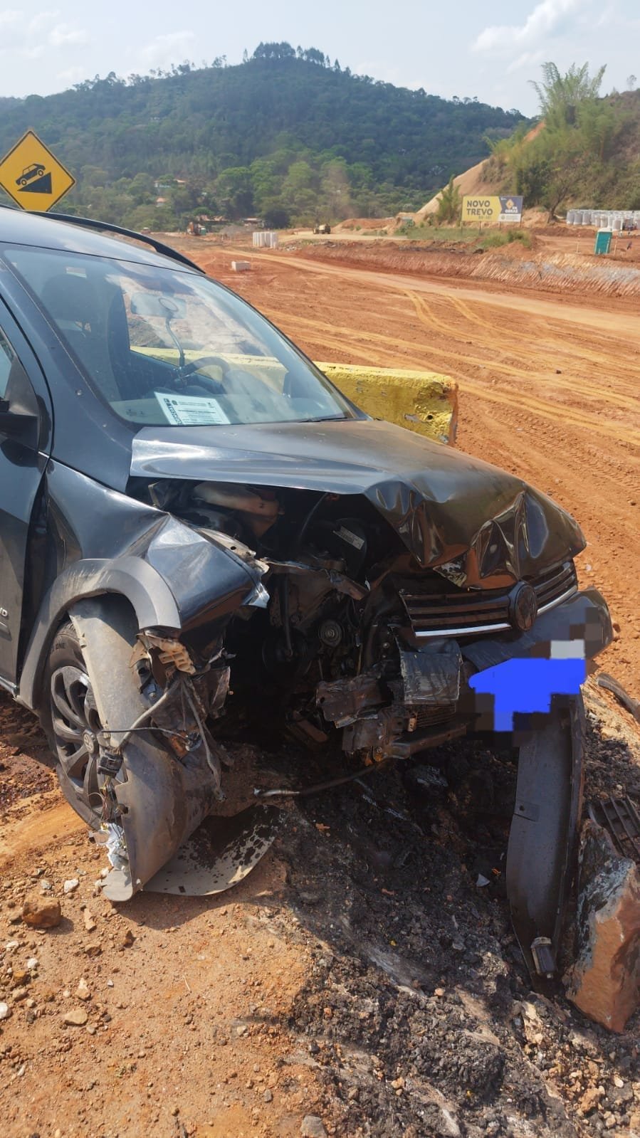 Uma motorista estava dirigindo um veículo pick-up Saveiro de cor preta pela rodovia BR-381, ao passar pelo desvio do Novo Trevo que está em construção acabou perdendo o controle do veículo e chocou-se violentamente contra uma mureta de proteção.