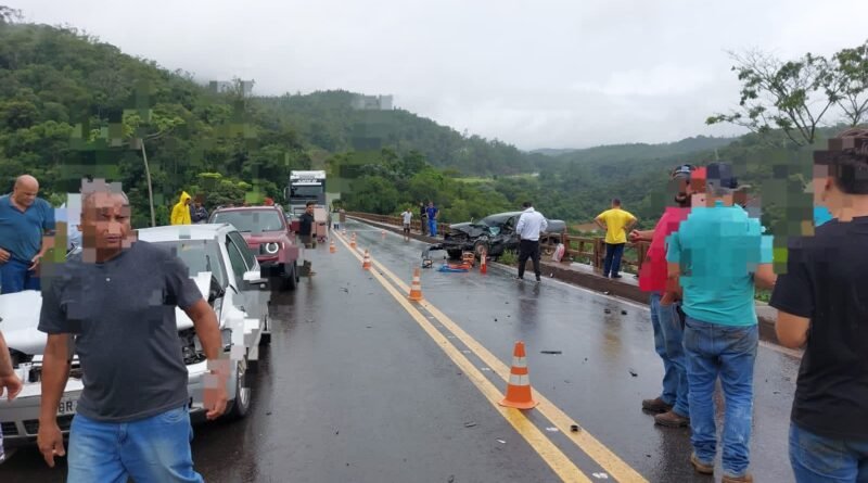 Nesta ocorrência temos informações que um acidente aconteceu na entrada da ponte e que envolveu dois veículos de passeio além de um caminhão baú.