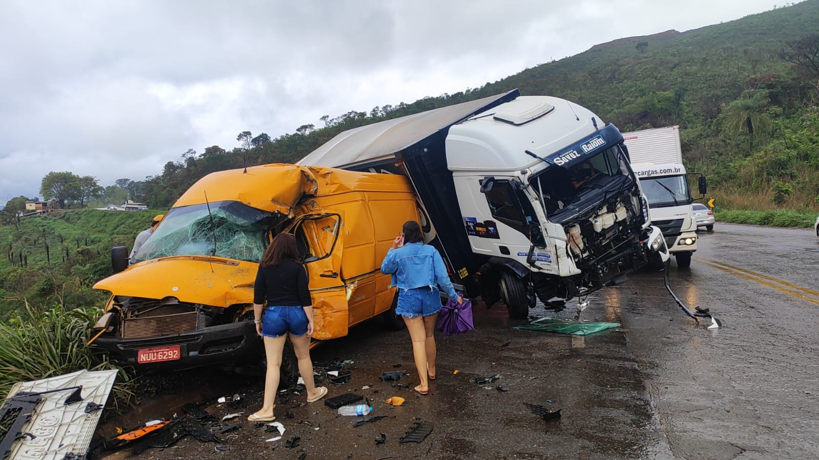 As primeiras informações dão conta que uma van, um caminhão e uma carreta estão envolvidos no acidente.
