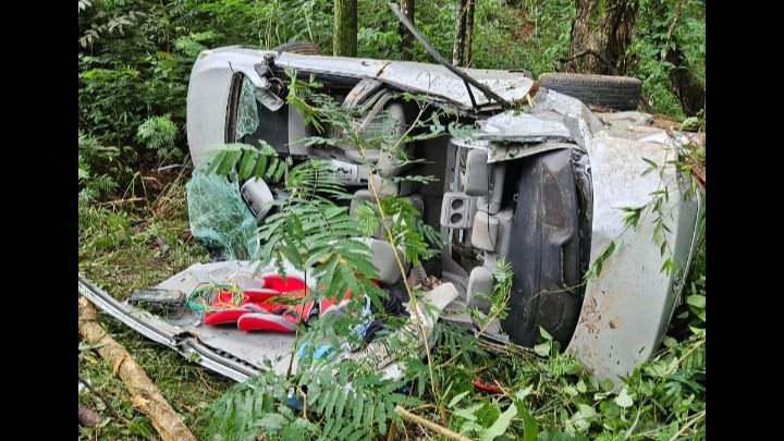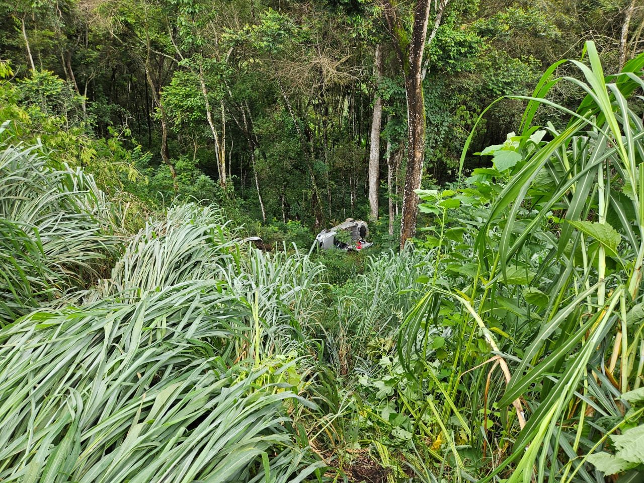 Um veículo Corolla que estava vindo de Belo Horizonte com sentido Caratinga perdeu controle na curva do Mel, próximo da Lanchonete Montanha Lanches e desceu barranco.