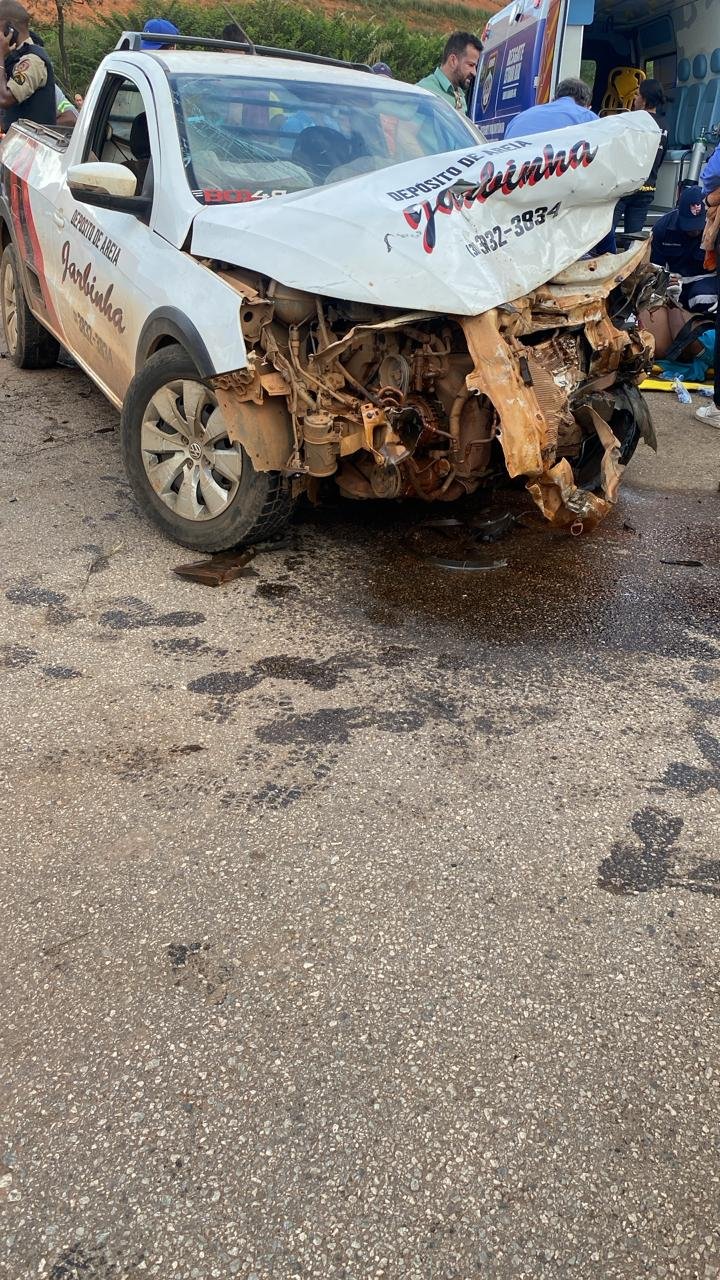 Onde um Saveiro da empresa Jarbimha e um Fiat Uno colidiram-se, o acidente deixou uma vítima fatal identificada como Tanio, condutor do Fiat Uno e que trabalhava com gesso.