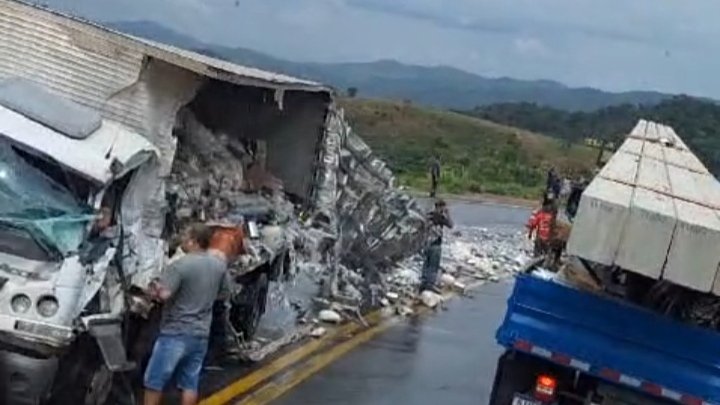 As primeiras informações dão conta que um caminhão 3/4 teria sido atingido por uma caminhonete Hilux, que rasgou todo o baú do veículo, a Hilux rodou e parou do outro lado da pista.