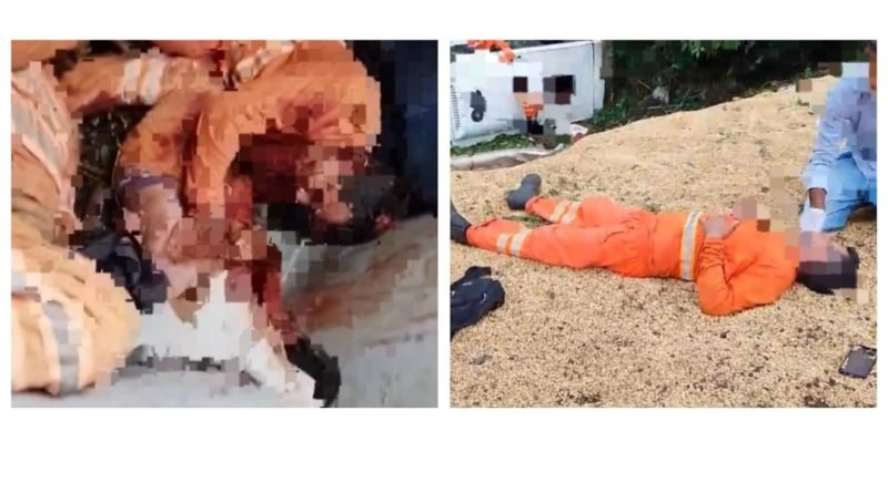 O estrago que as imagens mostram é terrível, corpos dentro do ônibus, pessoas feridas sobre o ônibus e a carreta tombada e a carga de grãos espalhada pela pista.