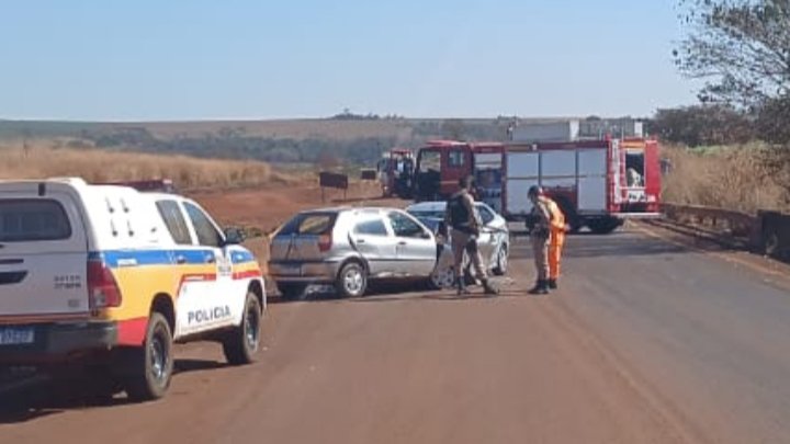 No local, foi constatada colisão frontal envolvendo dois veículos automotores.