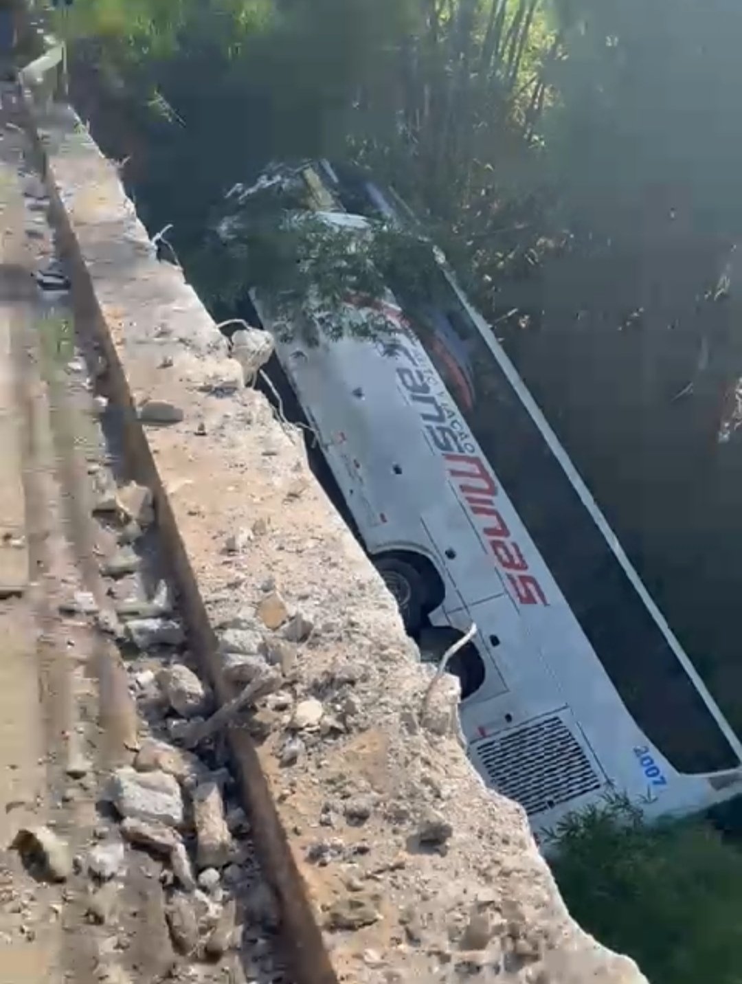 Acidente gravíssimo ônibus cai da ponte após bater de frente em veículo na BR-116 deixando vários mortos