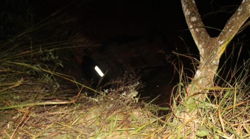 A Polícia Militar foi avisada do acidente e uma guarnição empenhada para o registro. Os militares constataram que Fernando Rosa dirigia a GM Blazer, de cor azul, placa CVT-9442, que parou na ribanceira com as rodas para cima.