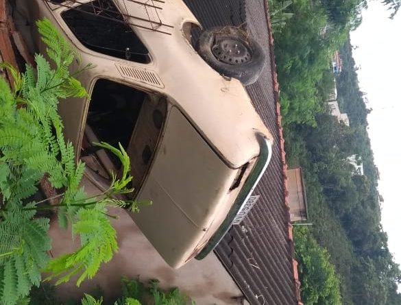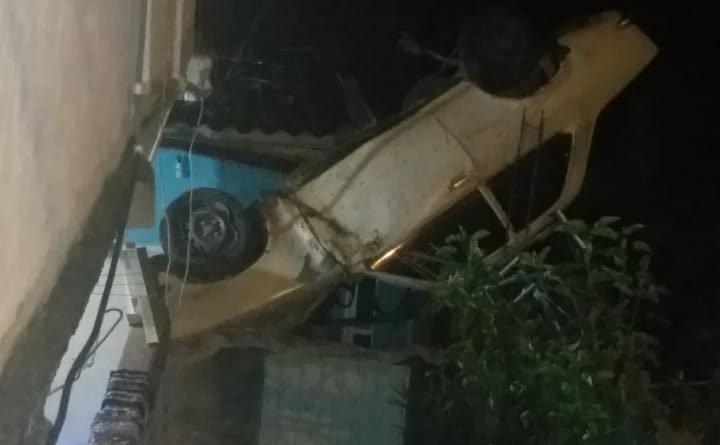 Segundo informações dos moradores o veículo Chevette, placas GVO 5380 de São Gonçalo do Rio Abaixo perdeu o freio na descida da ladeira e capotou parando sobre uma casa.