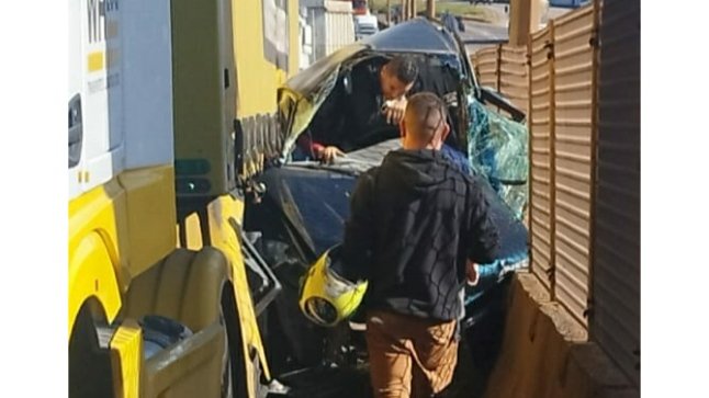 O grave acidente que envolveu um carro e uma carreta, aconteceu mais precisamente no bairro Novo Riacho, sentido Belo Horizonte em frente a Hípica.