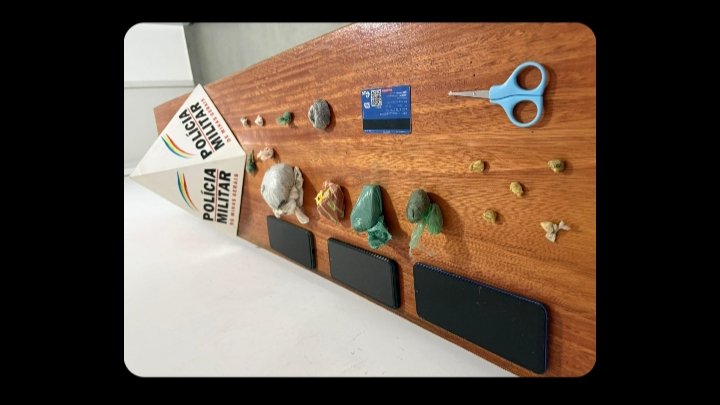 Durante a ação policial, foi iniciado monitoramento em pontos estratégicos, ocasião em que os militares observaram a entrega de uma mochila a um adolescente, que se deslocava em uma bicicleta. O menor foi abordado e, após buscas, foram localizadas no interior da mochila porções de substâncias análogas à maconha e ao crack, além de uma tesoura.