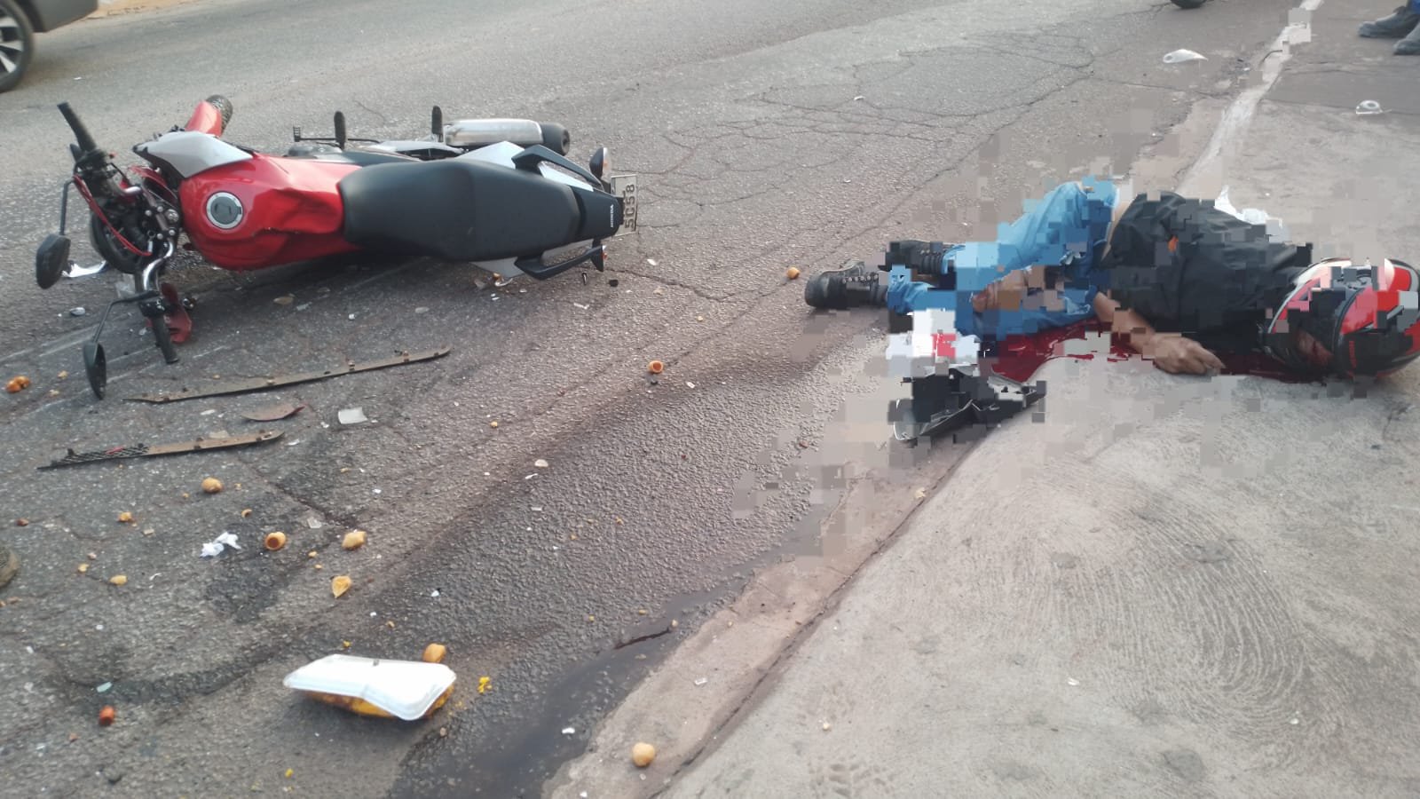 Onde uma motocicleta e um caminhão da Armaferro colidiram de frente, a ocorrência aconteceu no bairro Areia Preta.