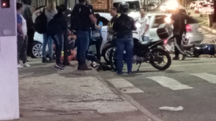 Neste momento, o moto taxista está no chão esperando atendimento médico, mas visivelmente está bem, pois estava lúcido e conversando, mas se queixando e muito de dores.