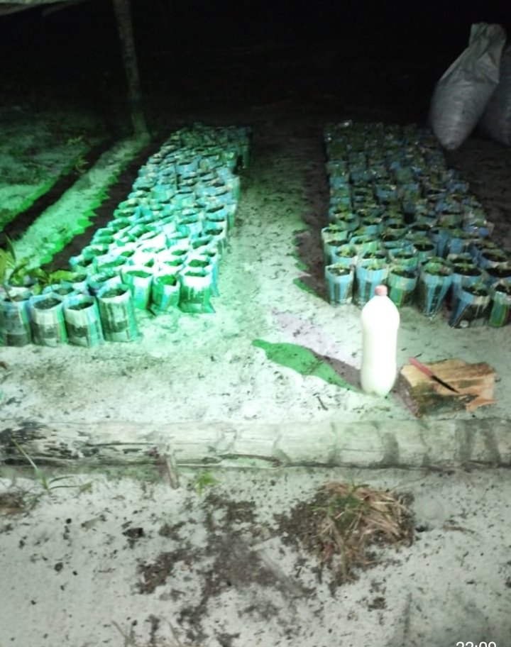 O indivíduo estava com 300 mudas pronta para o plantio. 2 armas de fogo de fabricação caseira. A prisão do “agricultor” aconteceu por volta de 03:00 horas da manha na localidade chamada Vila Campo do Sul. Vale lembrar que o município de São João de Pirabas tem uma extensão territorial de cerca de 710 km quadrados é muito grande.