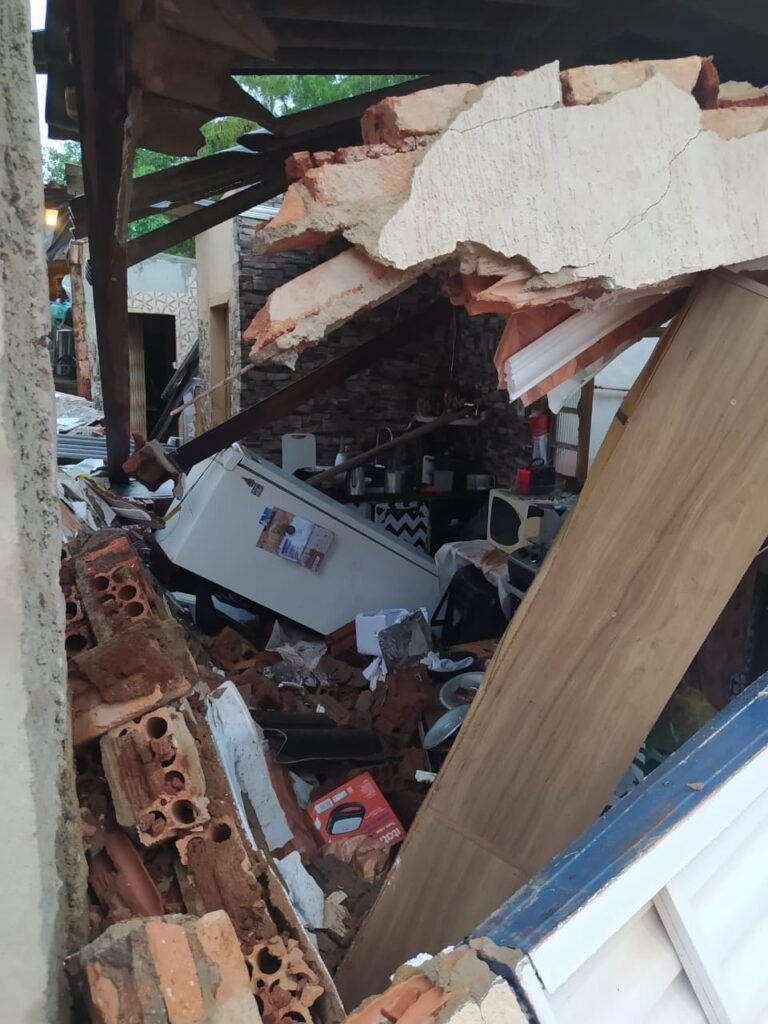 No bairro Santos Reis, Rua João Caetano Saraiva, foi registrado o desabamento de uma residência onde se encontravam quatro pessoas no momento do ocorrido.