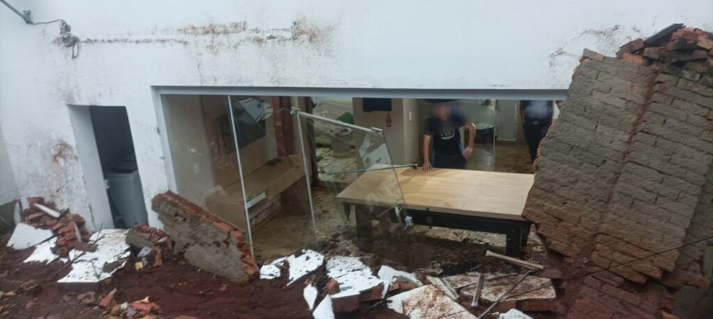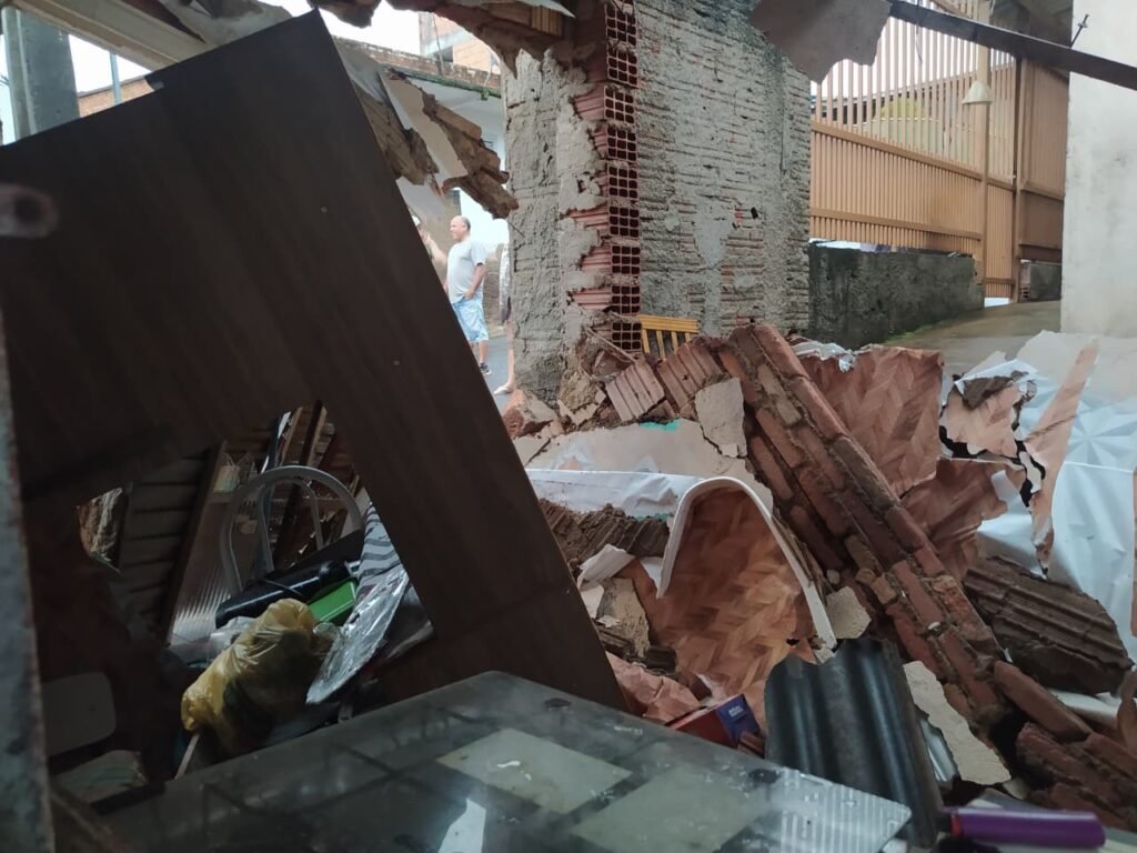 Já na Rua Ministro Salgado Filho, Centro, um muro desabou dentro do quintal de uma residência, atingindo uma porta de vidro.