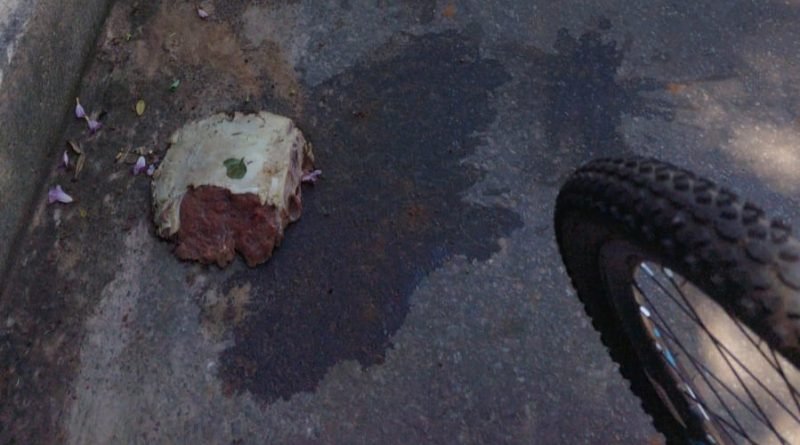 Essa imagem começou a rolar via grupos de wattassp da cidade, um internauta disse que havia era um despacho no local, com bebidas, mas após algum tempo alguém carregou as bebidas e ficou a carne.