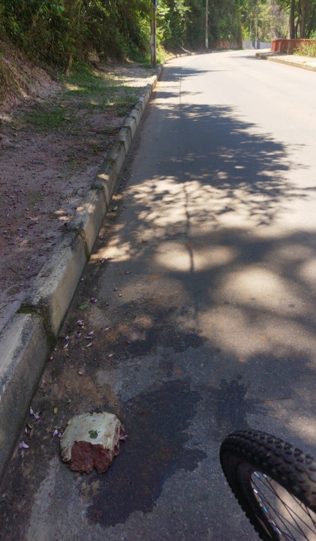 Acabou de chegar na Redação uma imagem no mínimo estranha, um pedaço de contra-filé perdido no meio da rua.