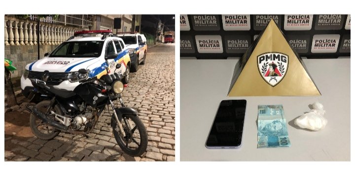 Durante a abordagem e buscas, foram apreendidos uma porção de aproximadamente 25 gramas de cocaína, um telefone celular e a quantia de R$100,00 em dinheiro. Também foi apreendida uma motocicleta utilizada na ação.