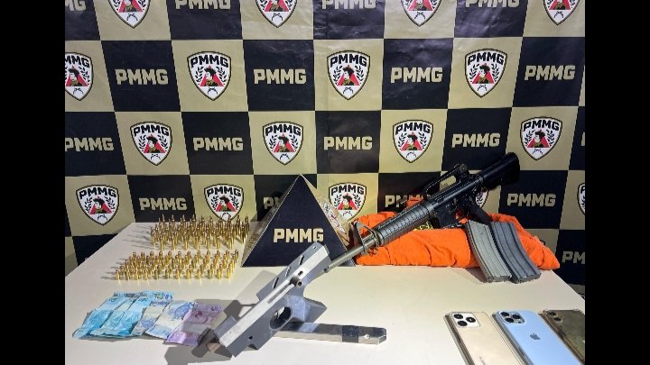 Na localidade conhecida como Morro Acaba Vida, zona rural de Alvinópolis, foi localizado um macacão laranja fluorescente, sob o qual estavam ocultas duas armas de fogo (um fuzil calibre 5,56 mm e uma submetralhadora artesanal calibre .380), além de munições e outros materiais.