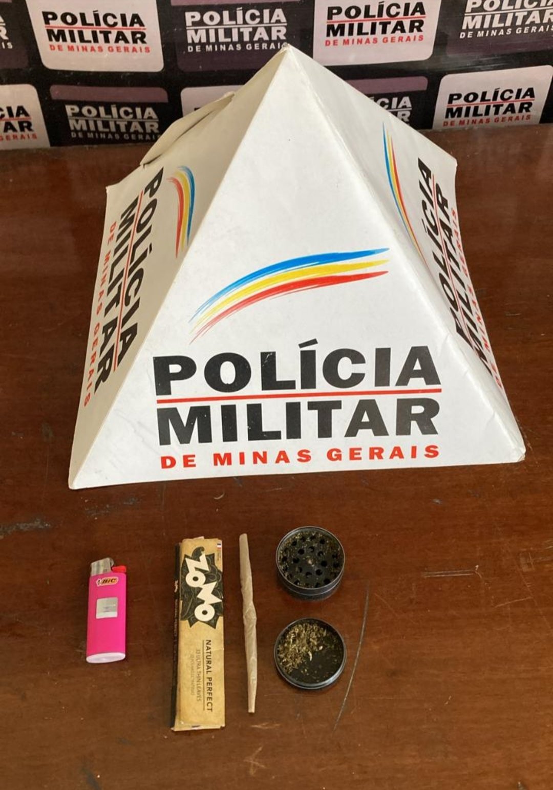 01 Cigarro e 01 de porção de maconha apreendidos.