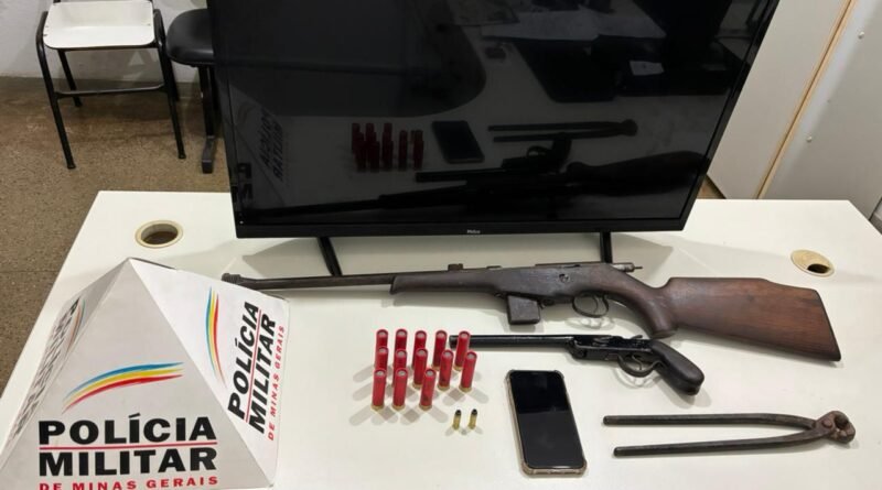 17ª Cia PM Ind – Alvinópolis – Policiais Militares de Alvinópolis e Catas Altas prendem autor de roubo, recupera veículo, apreende armas, munições, TV e Celular