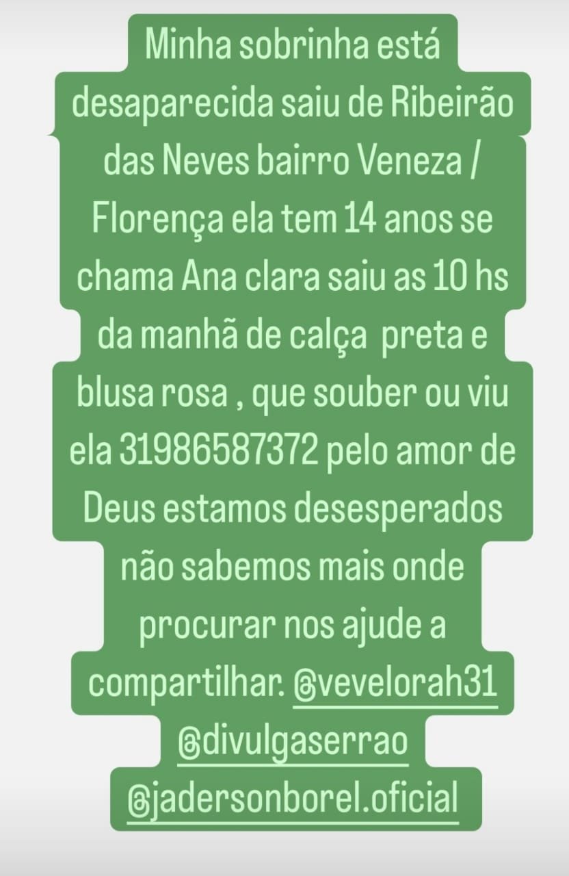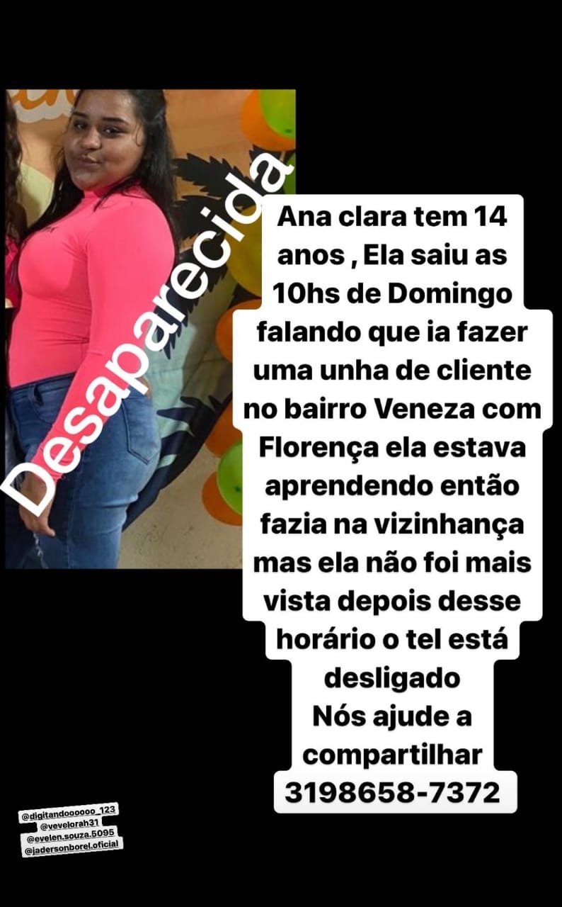 Geral Ana Clara encontra-se desaparecida #compartilhe 27 de junho de 2022 portaldomediopiracicaba@gmail.com Redação