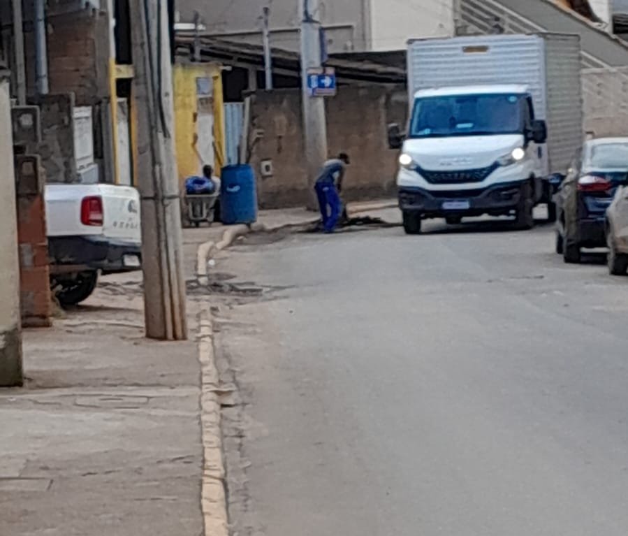 No último sábado ele fez um vídeo sobre um buraco que estaria aberto e jorrando água no meio da rua Santa Efigênia principal do bairro Patrimônio.