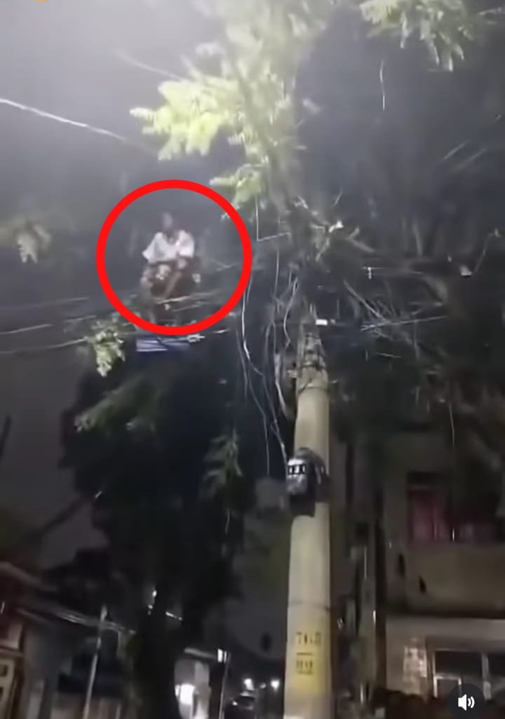 O elemento subiu no poste, mas os moradores o encurralaram, pois já estão cansados de faltar energia nas suas casas por causa da ação destes meliantes.