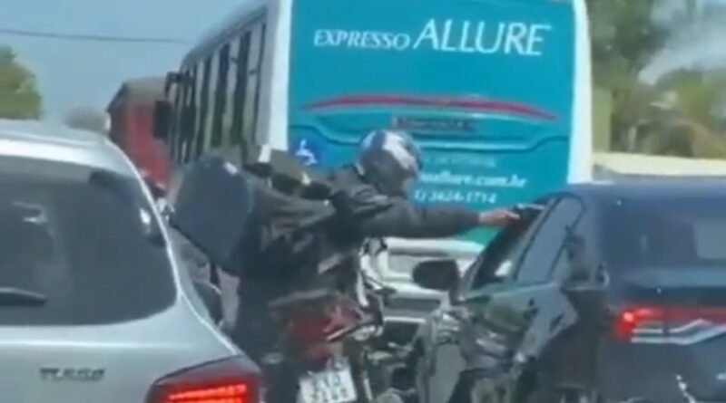 Somente então o assaltante monta na moto e foge. Informações indicam que a placa da motocicleta do suspeito, que foi captada no vídeo feito por uma pessoa que também estava parada no semáforo, seria de Osasco, em São Paulo.
