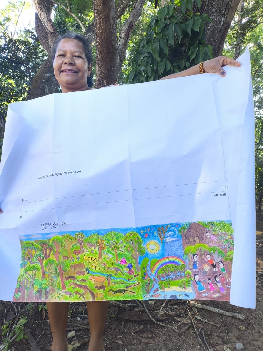 A arte de Dona Liça que, poderá ser vista nos painéis, carrega não apenas memórias, mas também uma forma de ensino que transcende a palavra escrita, transmitindo o saber ancestral de maneira viva e intuitiva. “Ali está um povo, mesmo que na escrita das imagens, mas uma escrita verdadeira. Por isso que é muito importante estar nesse lugar, para o povo sentir uma escrita que você está vendo acontecer. Vendo o nosso ensino que é diferente do ensino das letras. Se fosse uma letra, eu só ia sentir se eu lesse aquela letra. Só de eu ver a imagem, eu já sinto o ensino que ela está levando, mostrando e apresentando o meu povo nestes lugares urbanos”, explica a artista.