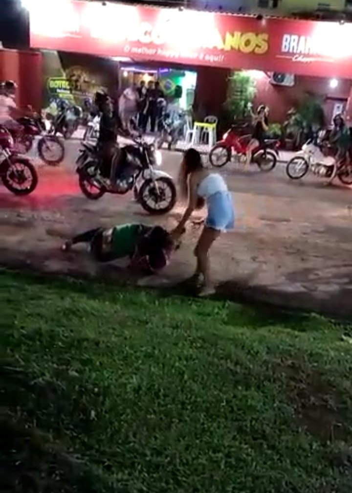 A luta aconteceu naa frente de um bar bastante frequentado na cidsde. Várias reste assistindo a luta uma espécie de vale tudo e grátis ainda por cima.