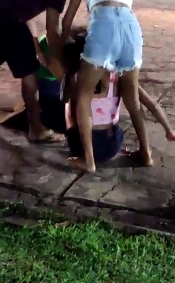 O vídeo é muito bom, puxões de cabelo para cá, tapas aqui e acolá, três novinhas se atacaram no meio da rua e e claro varias testemunhas para obsevar uma luta de street figth feminino.