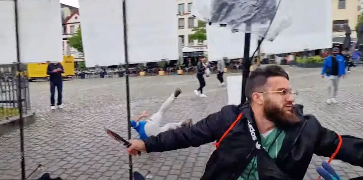 Imagens divulgadas nas redes sociais mostram um jovem armado com uma faca esfaqueando várias pessoas no centro de Mannheim.