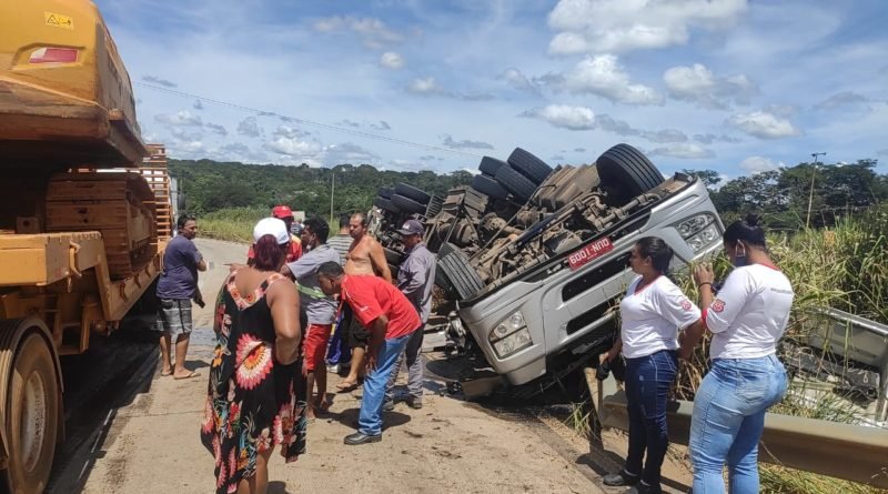 Como noticiado antes, o acidente aconteceu próximo ao Posto 65, no Km 400 da BR-381. O acidente ocorreu as 13:35 horas de hoje, sábado 19 de março, a careta capotou e o combustível vazou na pista.