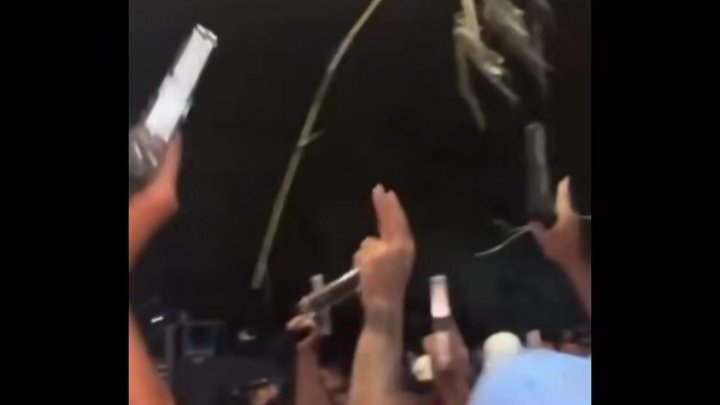 E como vocês podem ver acima vários vidas loucas exibindo armas de fogo, e só pistolas automáticas, mais de 10 pistolas, bandidos apontando para cima e pessoas filmando.
