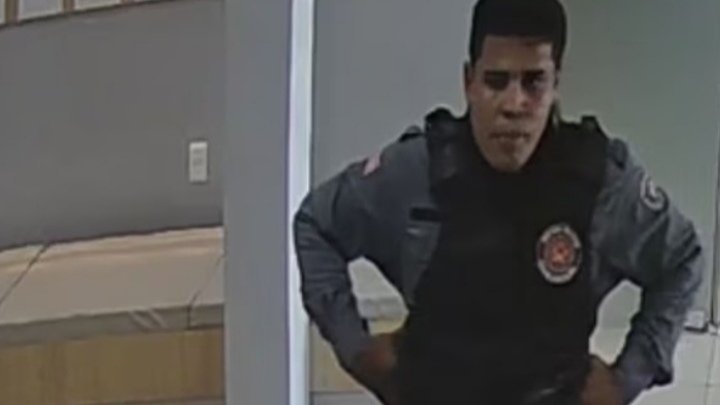 A ação criminosa durou pouco mais de dois minutos. Nas imagens, é possível ver o suspeito, com uma farda de policial militar, entrando pela porta com detector de metais na agência. Ele permanece parado por alguns minutos, chega a falar com uma funcionária e em seguida, armado, ele rende o segurança do local.