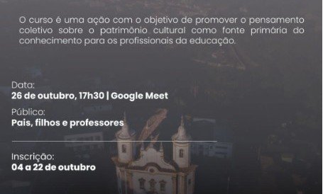 Inscrição aberta para curso gratuito de Educação Patrimonial