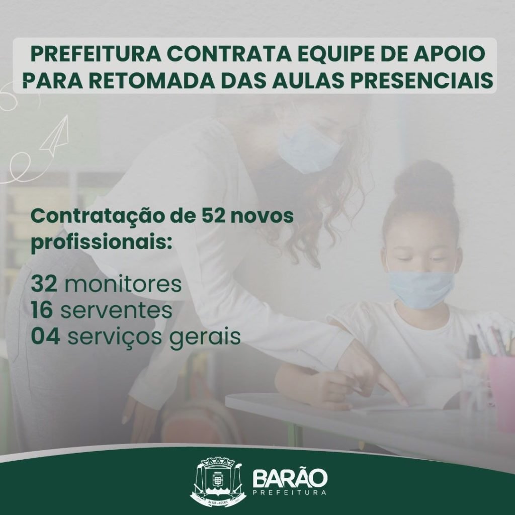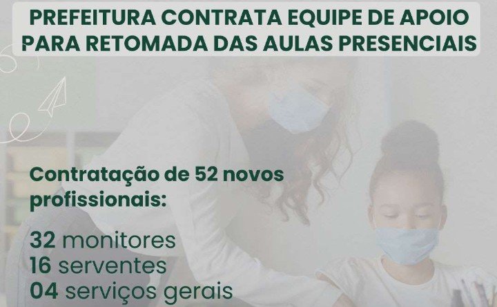Prefeitura contrata equipe de apoio para retomada das aulas presenciais.