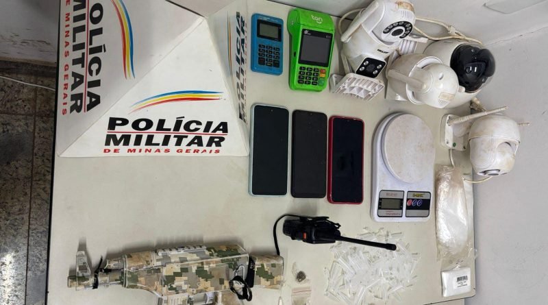 Ao chegarem ao endereço, os militares visualizaram dois suspeitos na porta de um imóvel. Ao receberem voz de abordagem, os autores fugiram para dentro da residência e depois escaparam por um beco interno. Durante buscas autorizadas no imóvel, a PM apreendeu diversos materiais relacionados ao tráfico, incluindo drogas, balança de precisão, embalagens, rádios comunicadores, celulares, câmeras de segurança e um simulacro de arma de fogo.