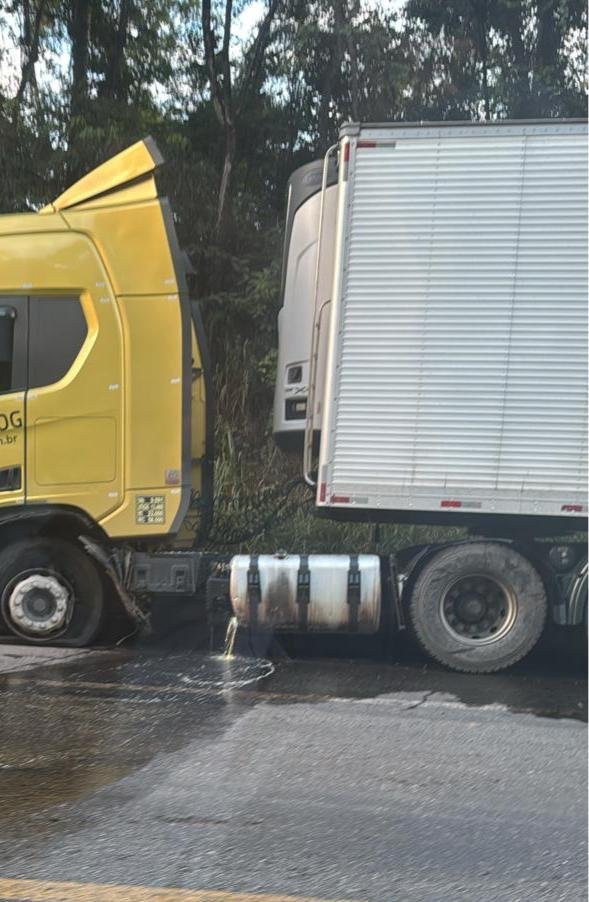 A ocorrência não teve vítimas. A carreta ficou estacionada na rodovia com intenso vazamento de petróleo.
