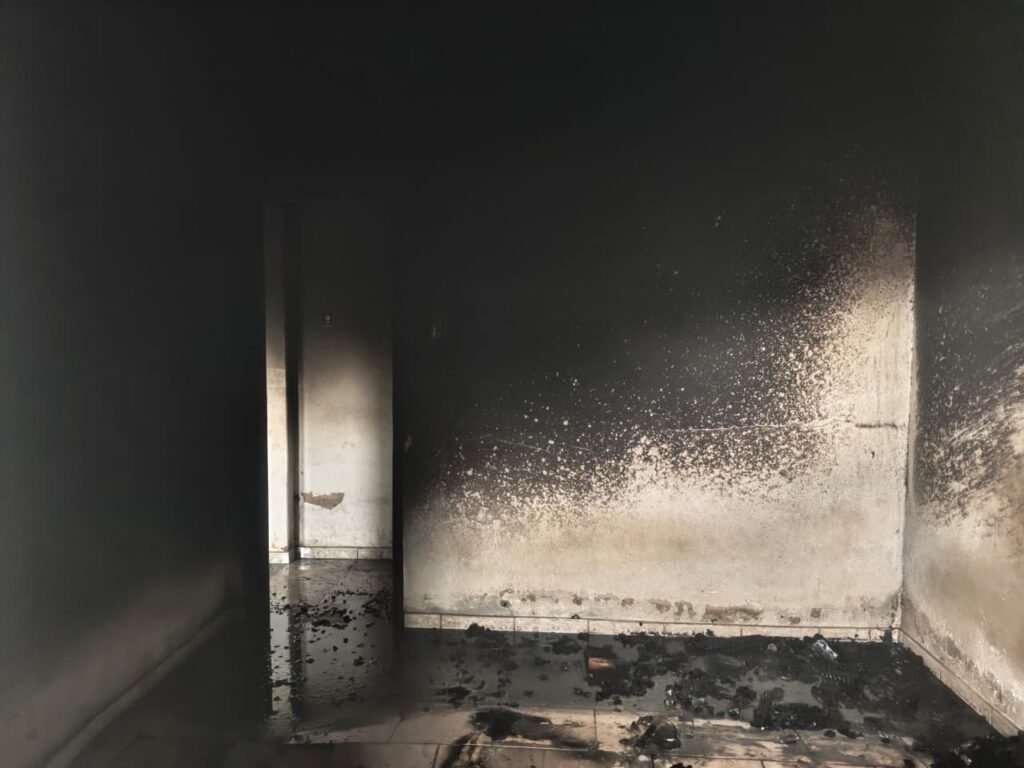 No local, os militares constataram que o incêndio atingia o pavimento inferior do imóvel, que fica abaixo do nível da rua, condição que dificultou a ventilação e contribuiu para a concentração de fumaça no ambiente.