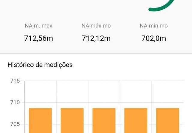 Segundo o aplicativo Proximidade, a barragem de Peti encontra-se com pouco mais da metade da capacidade e defluência de 68,7m3/s, contra 66 de afluência.